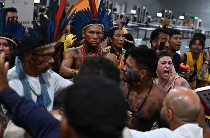 Decenas de manifestantes llegaron al hall principal y derribaron una de las puertas de...