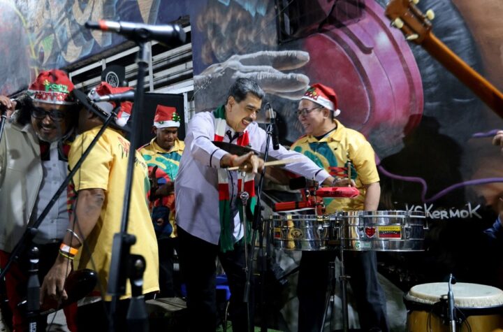 1 min read INTERNACIONALES Nicolás Maduro, entre gaitas y timbales: cena navideña, baile y un mensaje desafiante a Trump 24 diciembre, 2025 Mas Que Noticias admin Con bufanda festiva y rodeado de música, el líder del régimen de Venezuela encabezó...