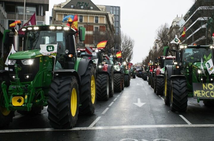 Los agricultores españoles protestaron contra el pacto firmado en enero, que todavía no entró...