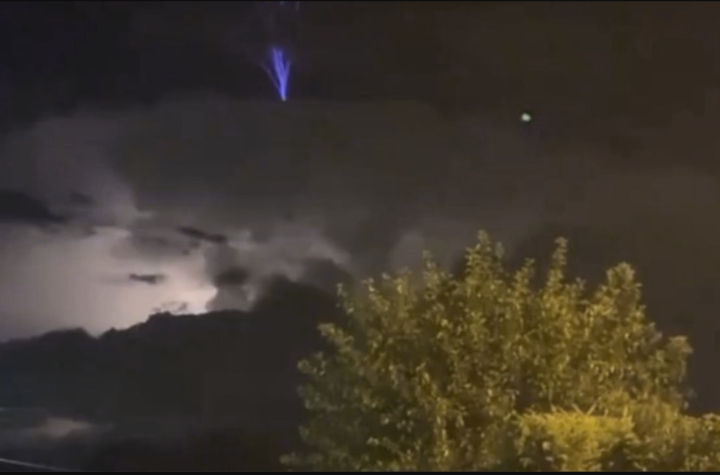 El fenómeno atmosférico conocido como Blue Jet, una descarga eléctrica ascendente de color azul, iluminó el...
