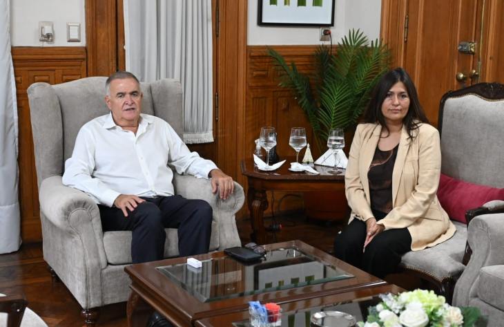 El gobernador, Osvaldo Jaldo, se reunió en Casa de Gobierno con la intendente de la ciudad de La Cocha, Gabriela Rodríguez, con quien analizó cuestiones relativas al estado de situación de la localidad en el marco de las intensas lluvias que afectaron el suelo tucumano.