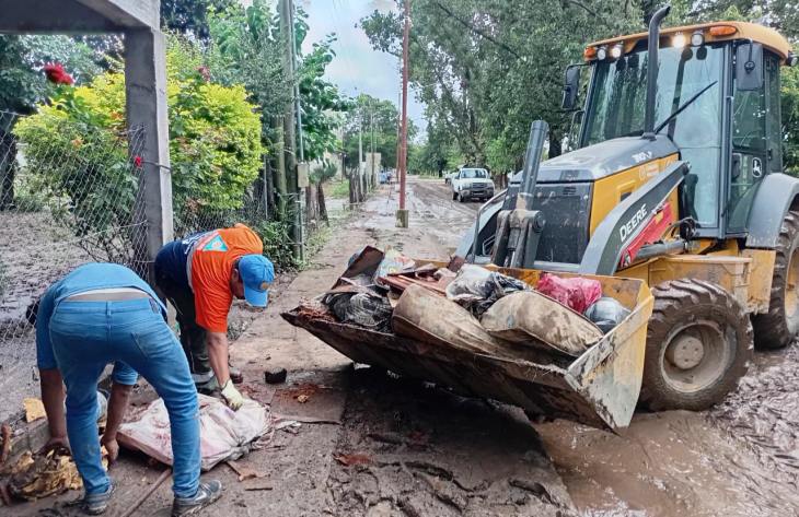 «Personal de la comuna, Defensa Civil y el SIPROSA trabajaron en los barrios San José y 9 de Julio realizando tareas de limpieza con maquinaria pesada y relevamiento sanitario. La parroquia aportaron donaciones», detalló Imbert.